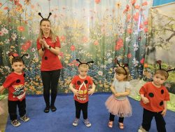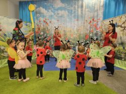 Wszystkie cztery grupy zaprezentowały się w przygotowanych piosenkach, do których dzieci zostały starannie przygotowane przez swoich opiekunów. Próby do przedstawienia trwały już od kilku tygodni i stanowiły efekt systematycznej, konsekwentnej pracy opiekunów. Pomimo licznych, codziennych obowiązków związanych ze sprawowaniem należytej opieki nad dziećmi, opiekunowie wykazali się wyjątkowym zaangażowaniem, inicjatywą oraz otwartością na podejmowanie nowych wyzwań. To właśnie ich kreatywność, cierpliwość i ogrom włożonego serca sprawiły, że dzieci mogły z dumą zaprezentować swoje umiejętności. Ich wkład w przygotowanie występu był nieoceniony i miał kluczowe znaczenie dla sukcesu całego wydarzenia – mali artyści z ogromną radością i pewnością siebie wystąpili na scenie.